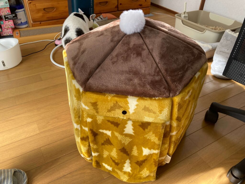 広さも猫4匹は入れるほど余裕があり、高さもあるので、猫のお家のよう。